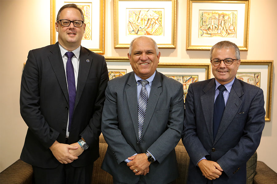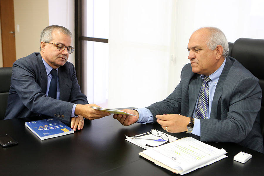 O presidente da Associação dos Procuradores do Estado de Alagoas (APE/AL), Flávio Gomes de Barros, e o vice-presidente da instituição, Marcos Savall, visitaram, na manhã desta quinta-feira (2), o presidente do Tribunal de Justiça de Alagoas (TJ/AL), desembargador Otávio Leão Praxedes.